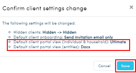 3. Once your default client portal views have been selected, click 'Save'.