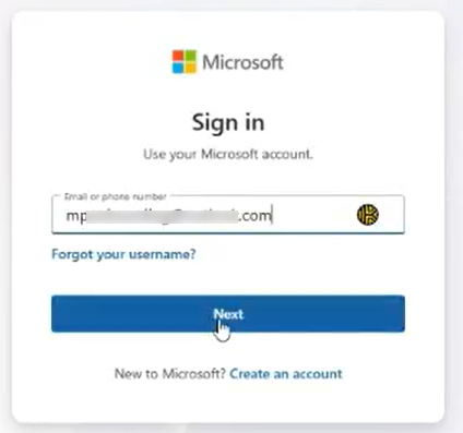 1. On the login page, add your email address and click "Continue with Microsoft Account"