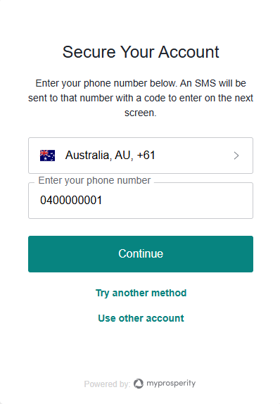 In this article, SMS is the option selected. Enter your mobile number and select 'Continue'