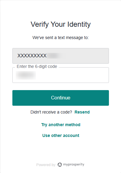 Enter the 6 digit code sent to your phone and click 'Continue'