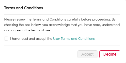 - You'll then be logged prompted with Terms & Conditions. Once accepted, you'll be logged in.