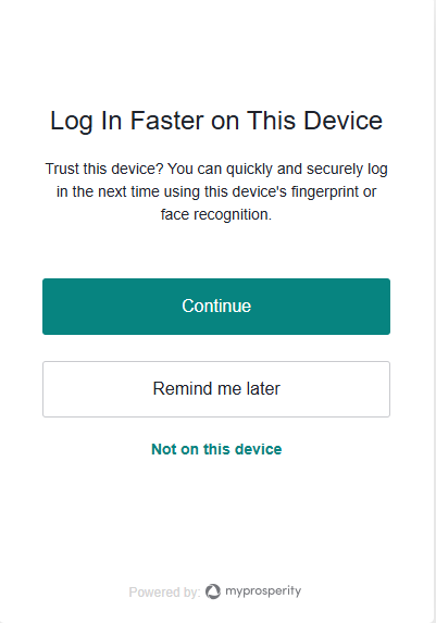 - You will then be prompted to set up fingerprint or face recognition, or a passkey, on the device you are currently using.