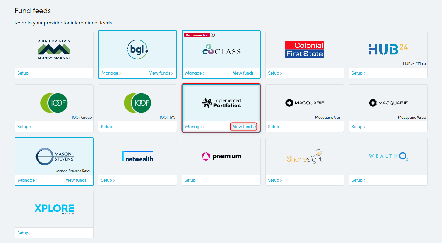 - Once your credentials are accepted, you will see the message ‘Successfully connected to Implemented Portfolios. View Funds