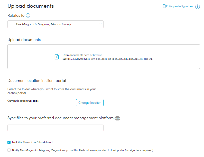 8. Finally, 'Lock this file so it can't be deleted' is enabled by default. This ensures that the client cannot delete the document/s. If you want them to be able to delete the document/s, simply untick.