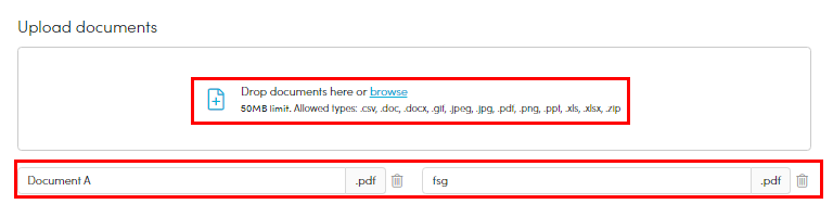 5. Next, drag and drop your file/s into the 'Upload documents' area, or click 'Browse' to locate them from your device.