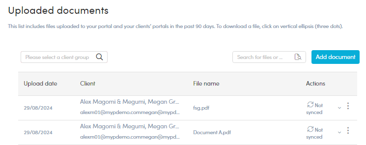 You can choose to notify the client (push notification and email) of the document upload by ticking 'Notify XXX that this file has been uploaded to their portal' option.