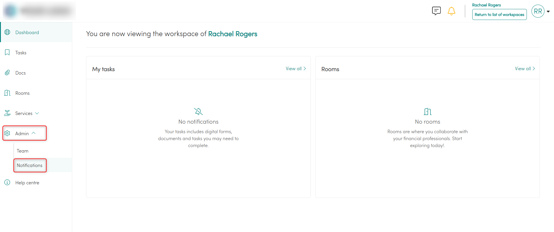 3. From the left-side navigation menu, select 'Admin' > 'Notifications'.