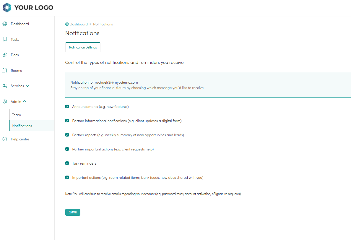 Email notifications are an important feature of your portal and are designed to help you keep up to date with your clients' activity, signature and digital form completion, new opportunities, tasks and much more.