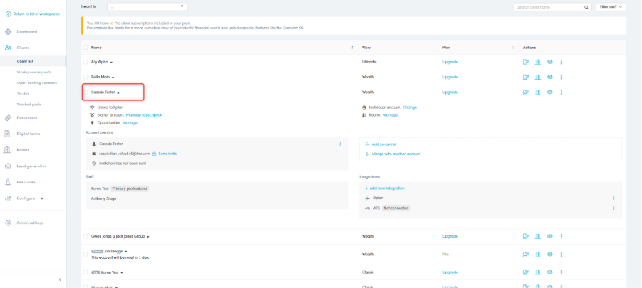In the Client list, click the client’s name to expand their details: