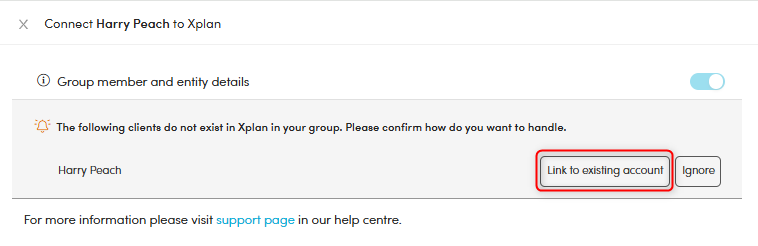 - Confirmation of the account chosen to link to in Xplan will appear.