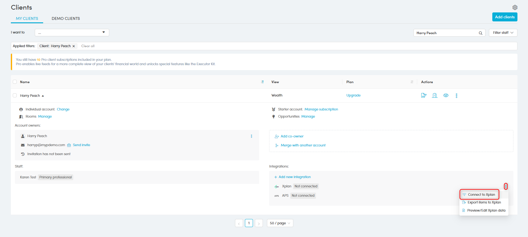 Note: If you have linked an item imported from Xplan to an existing item in the client's portal in error, or if the client has left your firm you will need to disconnect them from their Xplan file.