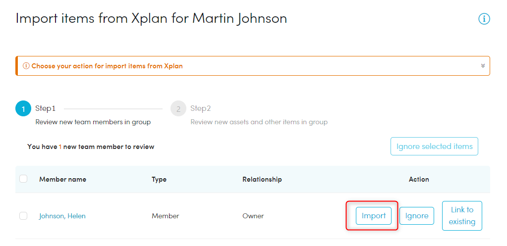 - The client has successfully been created and a confirmation window is shown. From here, click 'Import data from Xplan'.