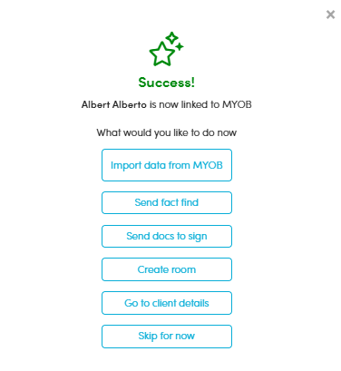 - The client has now been successfully linked to their MYOB PM file and a confirmation window appears.