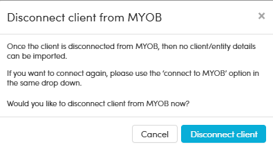 IMPORTANT: Once the client has been disconnected from their MYOB file, no client details can be imported. If you want to import details again, you will need to reconnect the client to their MYOB file as shown above.