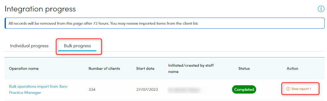 To view a report of the bulk import , click 'View report'.