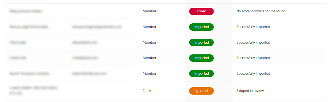 The 'Comments' column will display the reason that the client/entity failed to import. From here you can correct the data as necessary and re-attempt an import if required.