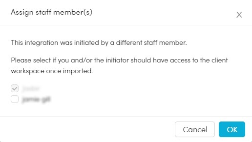 Once you have clicked 'Submit selected clients,' a popup window will appear for you to assign other staff members to the imported clients.