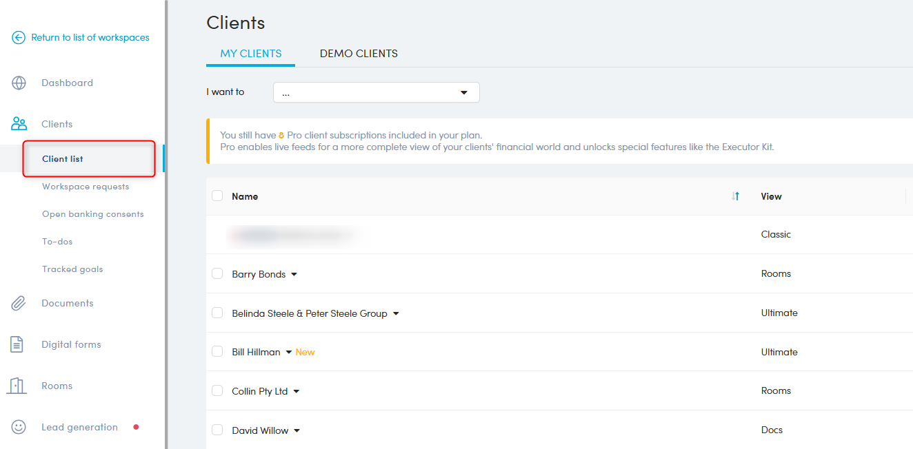 - Navigate to Clients > Client List.