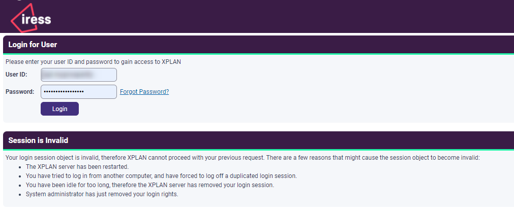 If the Xplan integration has been disconnected due to a password change for your Xplan user ID, or if you need to connect to a different Xplan user ID or URL, you will need to update your Xplan connection.